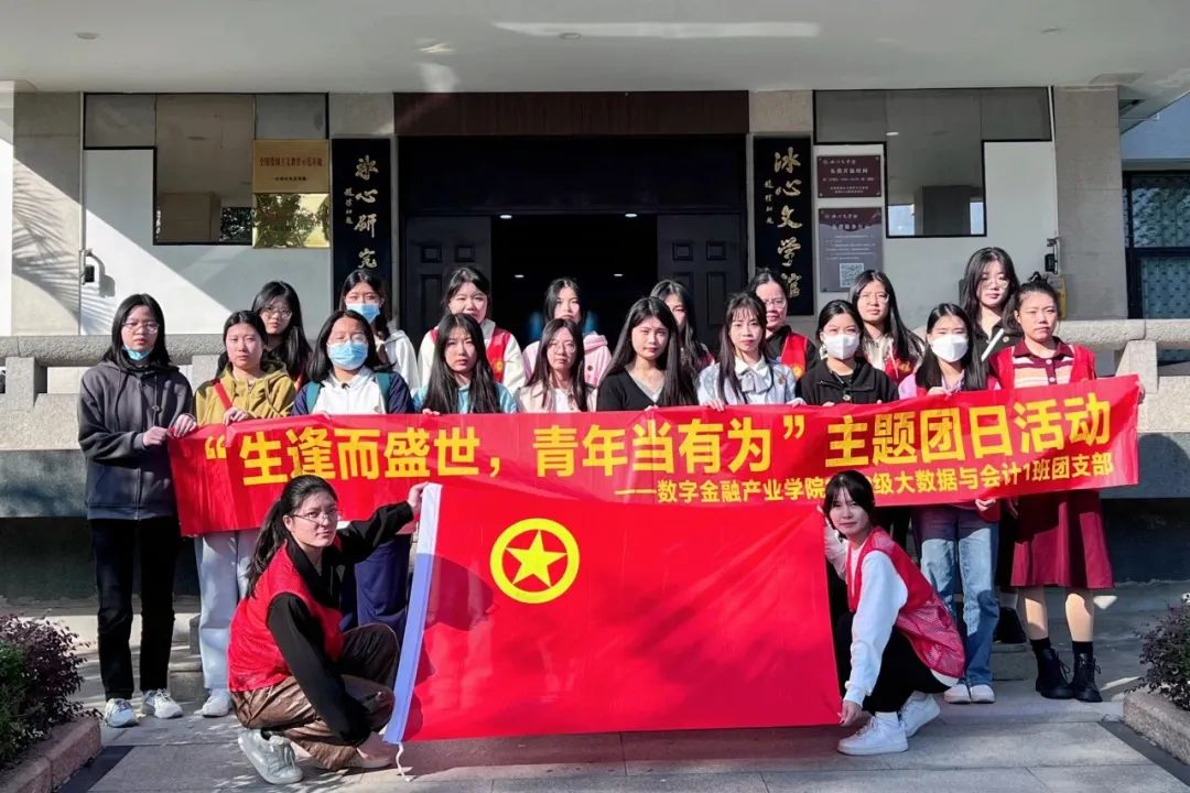 2023年11月17日,数字金融产业学院辅导员郑雯带领2022级大数据与会计1班团支部在冰心文学馆开展“生逢而盛世,青年当有为”主题团日活动。在宣讲员解说下,同学们参观了“冰心生平与创作展览”,加深对冰心“爱心”精神更深层次的了解,从冰心生平介绍及文学作品中,感受冰心海纳百川的胸襟,以及赤诚的爱国爱民之心。通过此次活动,同学们纷纷表示要学习冰心的“爱心”精神、大爱精神,将冰心的善良和勤奋传播给更多的人,争做新时代新青年。