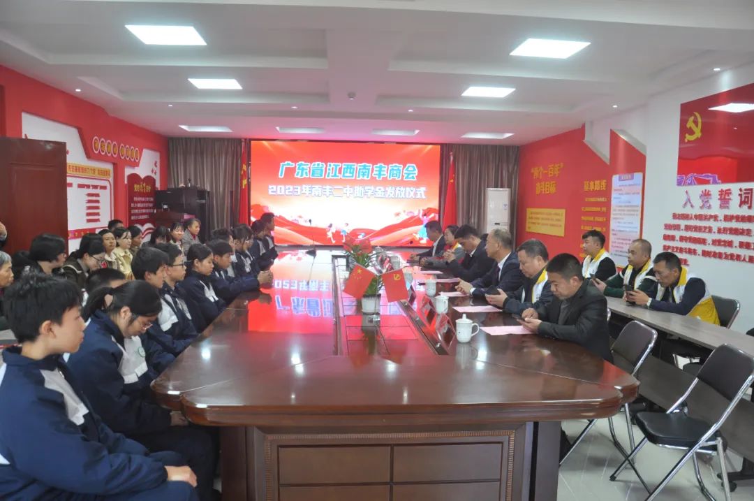 日前,广东省江西南丰商会在南丰一中、二中分别举行了2023年助学金发放仪式,为54名中学生发放助学金共计21.6万元。县领导曾彪、王秀英分别出席仪式。