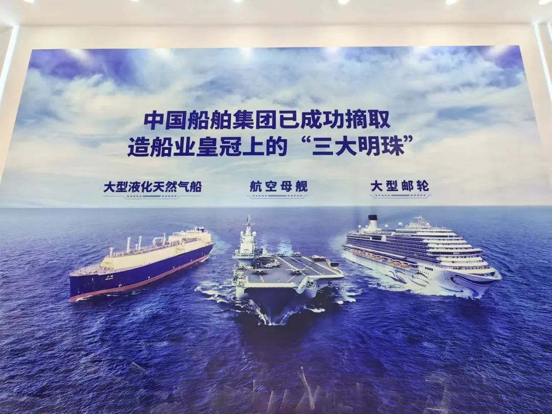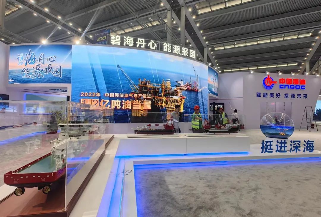 中国船舶集团带来的我国首制航空母舰、大型液化天然气运输船(LNG)、大型豪华邮轮,标注着我国已成功摘取世界造船业三颗“皇冠上的明珠”。招商局集团的“招商伊敦号”,是中国第一艘悬挂五星旗的高端邮轮。中国海油的深海一号”能源站、“海基一号”深水导管架、“璇玑”系统、“海洋石油720”深水物探船等,代表了当今海洋石油科技的最高水平。