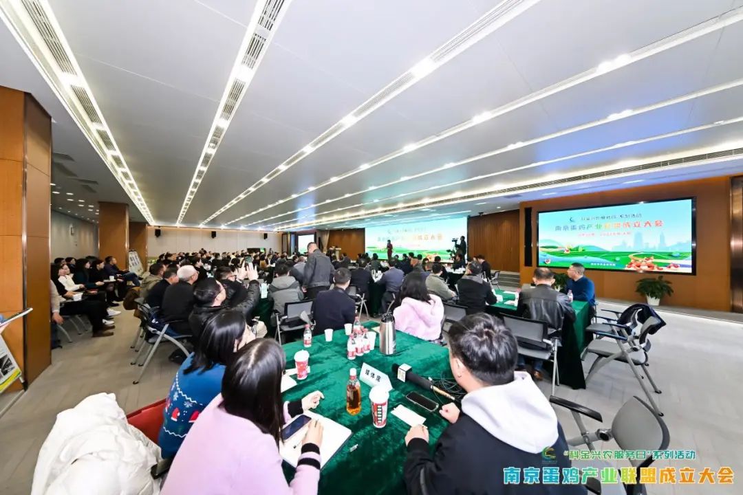 南京蛋鸡产业联盟成立大会暨亮码行动发布会于11月24日下午在紫金农商行会议室隆重举行。省、市农业农村厅领导、市、区级相关部门以及以南京禄口禽业公司为代表的联盟七十多家成员单位的负责人和代表近二百人参加了会议。