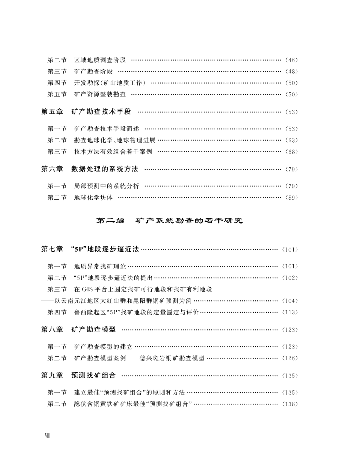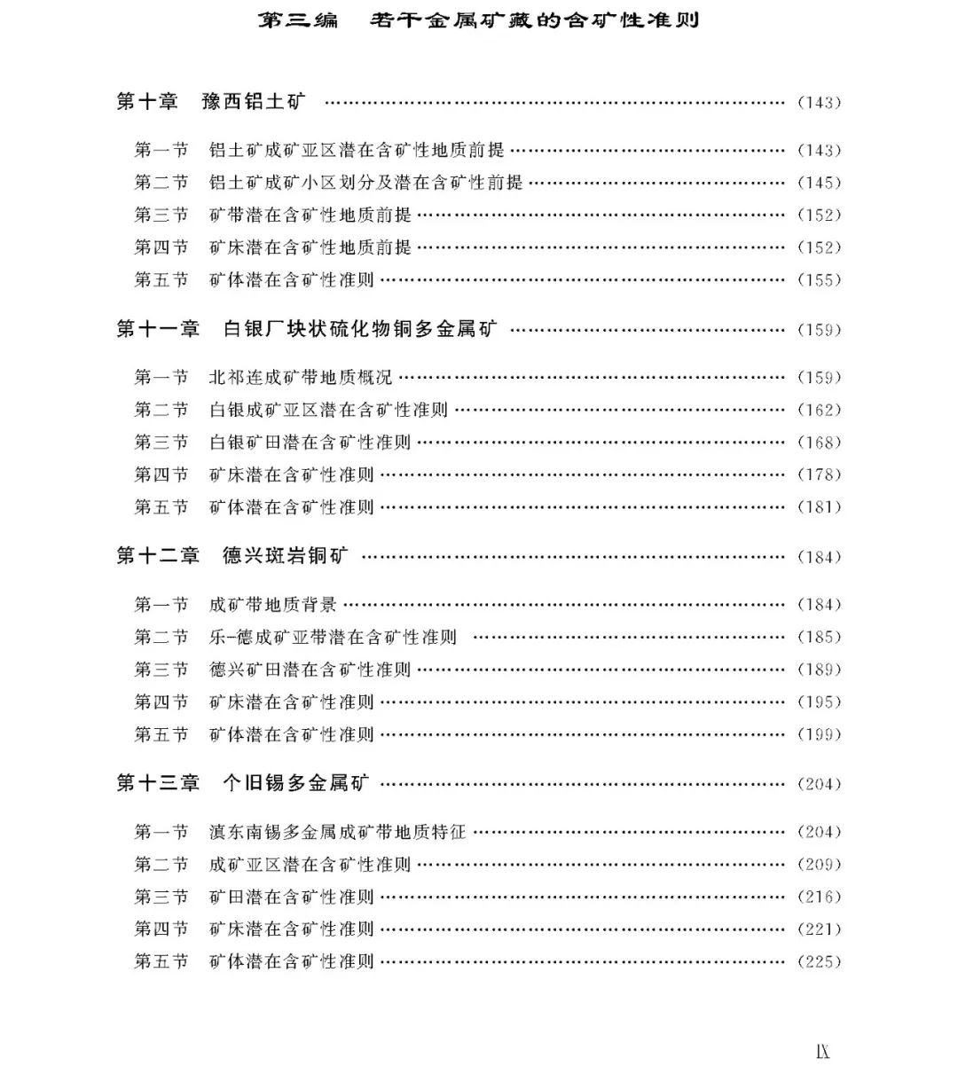 本书系统地对矿产系统勘查原则、金属矿藏结构模型、矿藏各层次潜在含矿性准则、矿藏各层次勘查技术手段等做出了全面阐述,介绍了数据处理的系统方法——局部预测中的系统分析和地球化学块体;对矿产系统勘查的若干研究,如赵鹏大的“5P”地段逐步逼近法和熊鹏飞、池顺都等的铜矿床勘查模式,苏联地质学家А. И. Кривцов等(1983)的“预测找矿组合”(ППК)作了介绍;对具有重大工业意义的若干金属矿产具体矿藏的含矿性准则作了剖析,其中包括豫西铝土矿,白银厂块状硫化物铜多金属矿,德兴斑岩铜矿,个旧锡多金属矿,铜陵矽卡岩型铁铜矿,胶东金矿,福建紫金山金、铜矿及鞍山本溪地区“鞍山式”铁矿等。