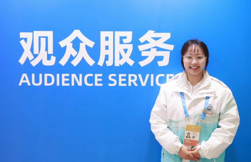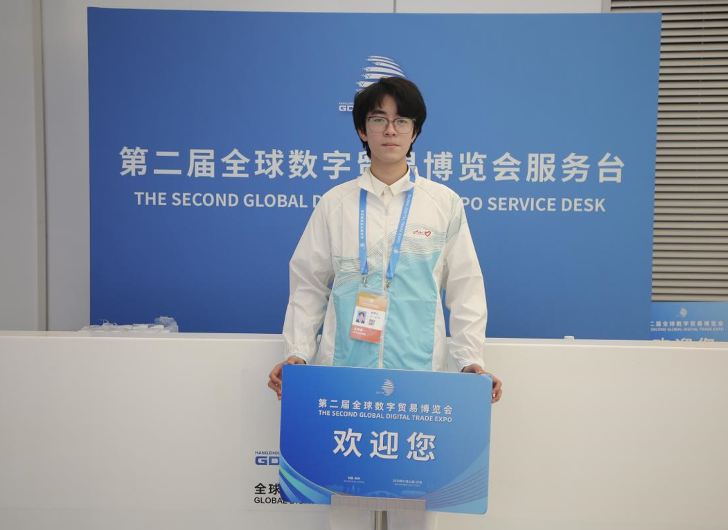 对于梁欣悦来说,第二届全球数字贸易博览会是大学以来参加的第一个大型志愿服务活动,这份任务对她来说即是机遇更是是挑战。在接待数据联盟时,尽管场馆外风很大,她也坚持面带微笑,举着引导牌站在门外,只为让参会宾客更快、更方便地找到队伍。来自用人方的肯定、来自观众的点赞,这一次数贸会的志愿服务经历也让她真正感受到了志愿的意义所在。