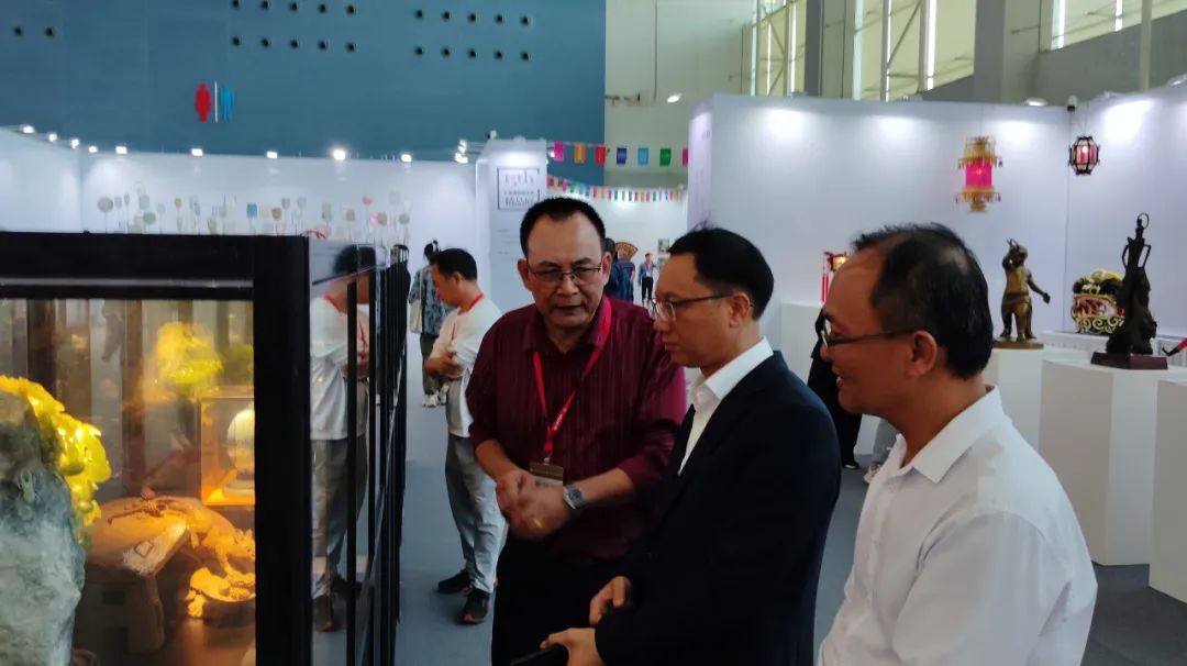 广东省文联党组副书记、专职副主席吴华钦,省民协主席刘晓春、专职副主席陈龙武等领导到云浮场馆指导工作,参观了我市第四届工美大师和第三届艺术大师的石艺、古琴、古筝的现场技艺展演,被我们的云浮石艺、特色艺术、非遗文创、地方特产等深深吸引。