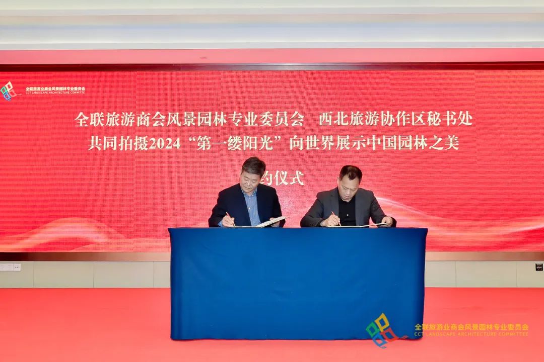 国内著名园林领域专家学者、大学园艺花卉院所、江浙沪园林企业、协会、联盟、学会代表,来自全国多地风景园林产业链上企业单位代表出席了当天成立大会,全联旅游业商会会长吉小东到会并讲话。成立大会先后召开了第一次会员大会第一次全体会议、一届一次理事会议、第二次全体会议,举行了“风景园林产业发展”对话、“园林+”对话、“园林-生态-旅游”对话共三场圆桌对话。新成立的专委会与西北旅游协作区秘书处签署了充分利用2024“第一缕阳光”全民同拍摄影迎新向世界传播中国园林之美的合作协议。