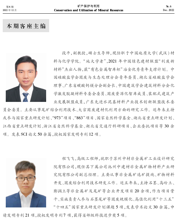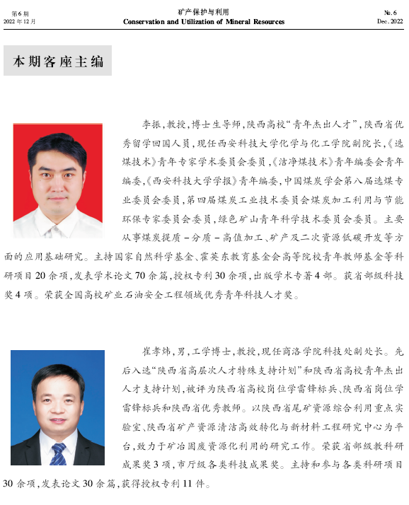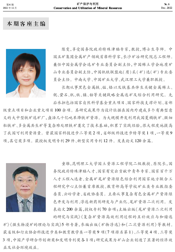 客座主编:国家自然科学基金委员会朱旺喜研究员、中南大学孙伟教授、中南大学赵中伟教授、广西大学陈建华教授、中国矿业大学(北京)邓久帅教授。