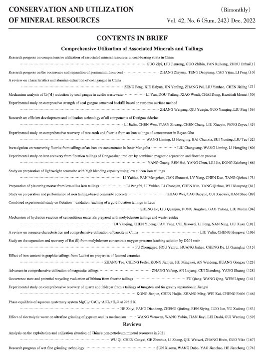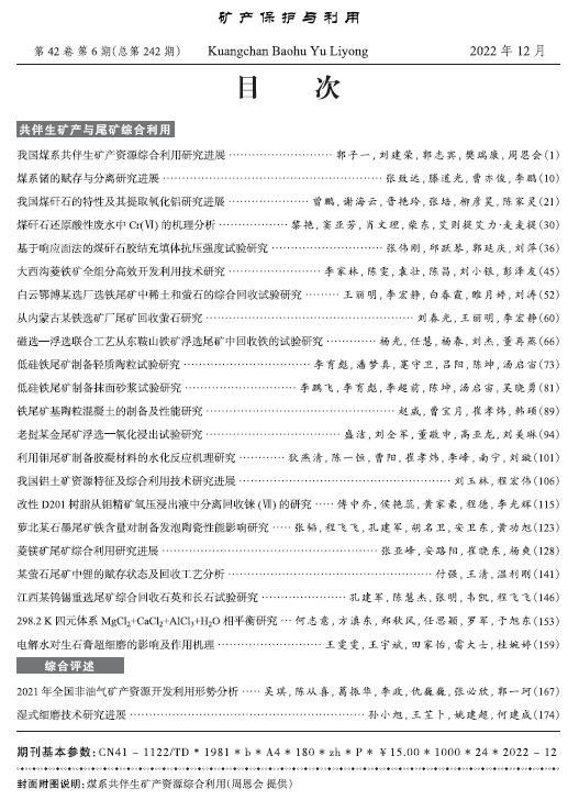 主要报道矿物分离过程精准调控、矿产资源清洁高效提取、矿冶绿色分离科学与工程新理论、新方法与新技术等相关基金项目的最新研究成果,尤其重点报道交叉学科和新方法、新理论的探索。