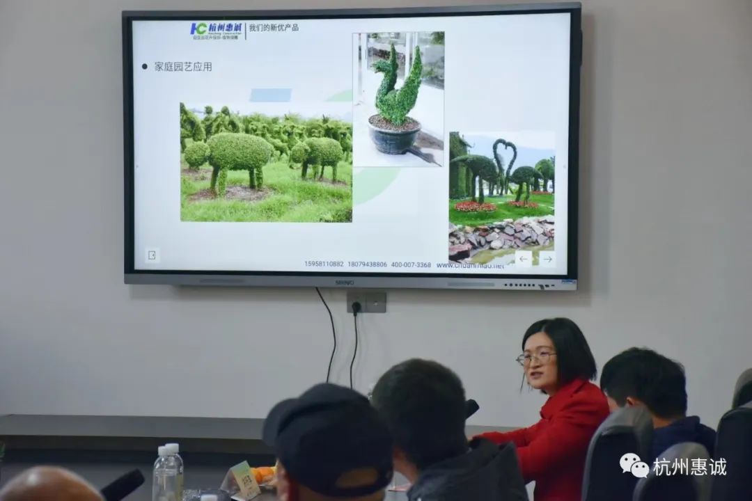 推介会上,惠诚从植物造型的草本/木本分类,到苗木原材料的选材/培育,再到对目前各类市政园林/家庭庭院的造型场景应用,进行了详细的讲解。