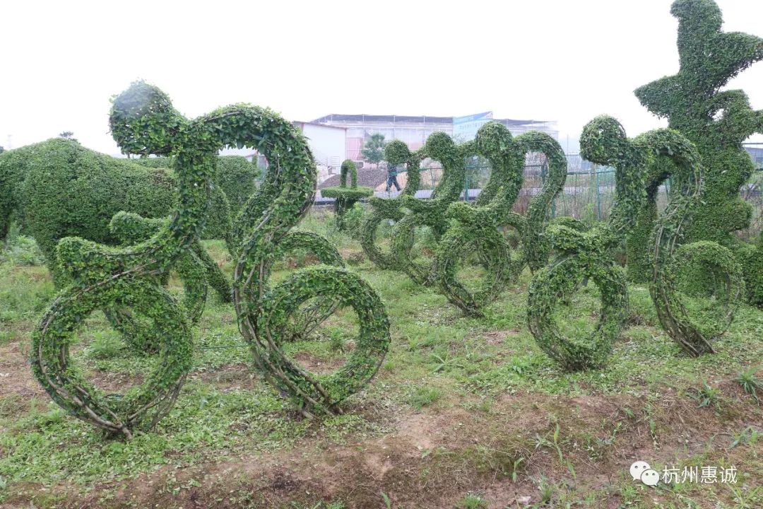 杭州惠诚目前在江西/杭州两地共有近千亩造型植物园,建有专门的造型植物展示公园,目前拥有近万件造型植物成品,可广泛应用于各类园林场景。