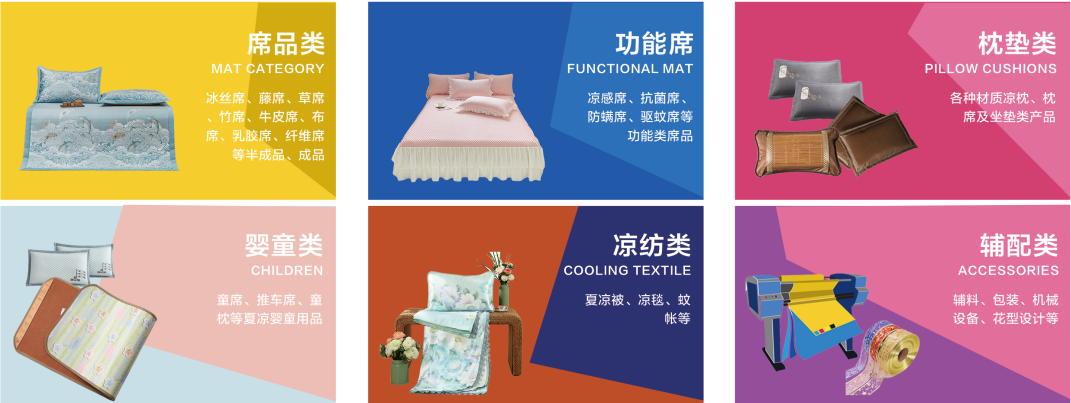 席是纺织的鼻祖。席居是中国古代最传统的生活方式,影响到东南亚乃至全世界。席在古代以保暖为主,兼具夏日纳凉的功能,发展至今演变为两个分支:家纺和凉席,成为现代家居夏凉用品的主要组成部分。展会组委会秉承“席出东方”的文化自信心、民族自豪感,以专业的办展理念,聚全国席居产业之力,汇世界夏凉采购盛会,打造一场以“席出东方·健康睡眠”为主题的夏凉盛宴。
