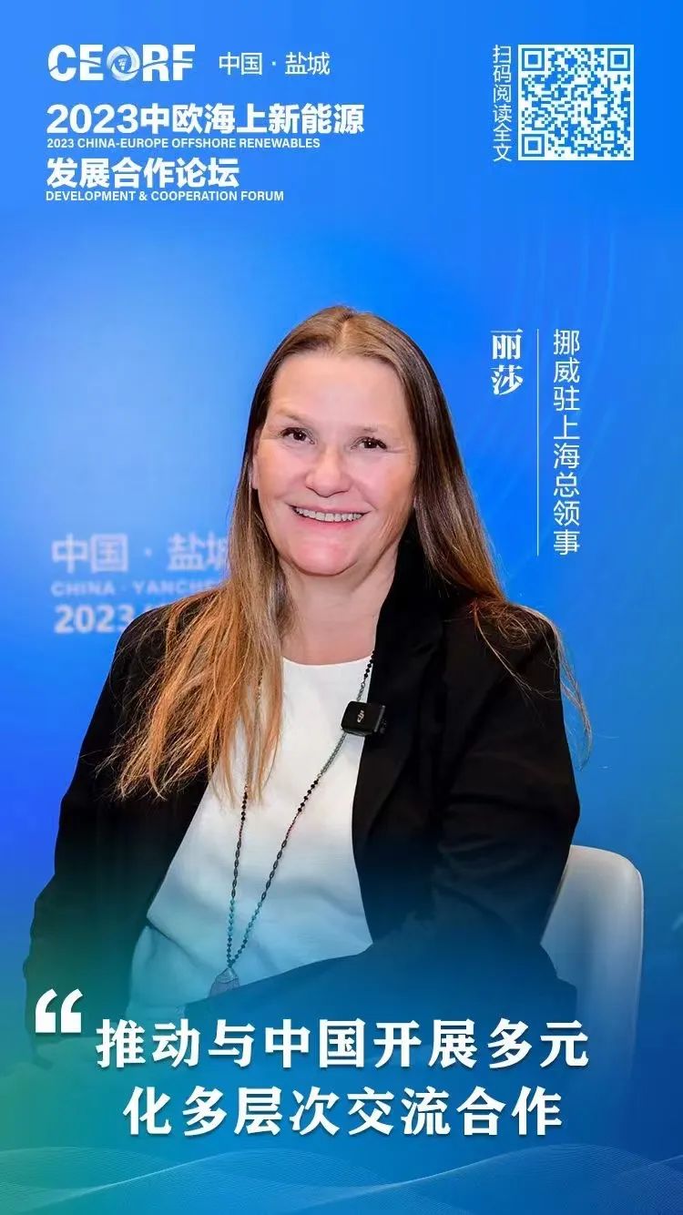 “中国和挪威有着超过40年的能源行业合作历史,最早的合作始于水力发电等领域。而随着时代发展,我们现在越来越重视可再生能源领域的合作,特别是海上新能源。”11月21日,挪威驻上海总领事丽莎表示。“我很高兴来到被誉为中国‘海上新能源第一城’的盐城,参加2023中欧海上新能源发展合作论坛。”丽莎是第一次来盐城,“从上海过来非常方便快捷,我想以后有机会还会再来盐城。