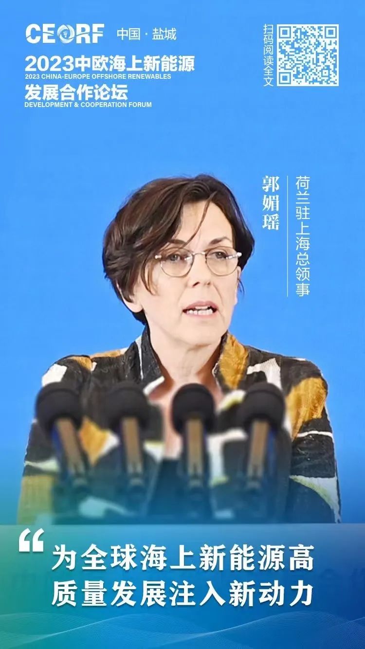 “2021年我第一次来盐城,欣赏了荷兰花海里盛开的郁金香,仿佛回到了我的祖国荷兰,这让我对盐城有了非常深刻的印象。”11月21日,荷兰驻上海总领事郭媚瑶表示,“非常高兴能够再次来到盐城,参加2023中欧海上新能源发展合作论坛。这样一场盛会不仅凸显了中欧推动可持续发展的决心,还充分说明了国际合作的重要性。”