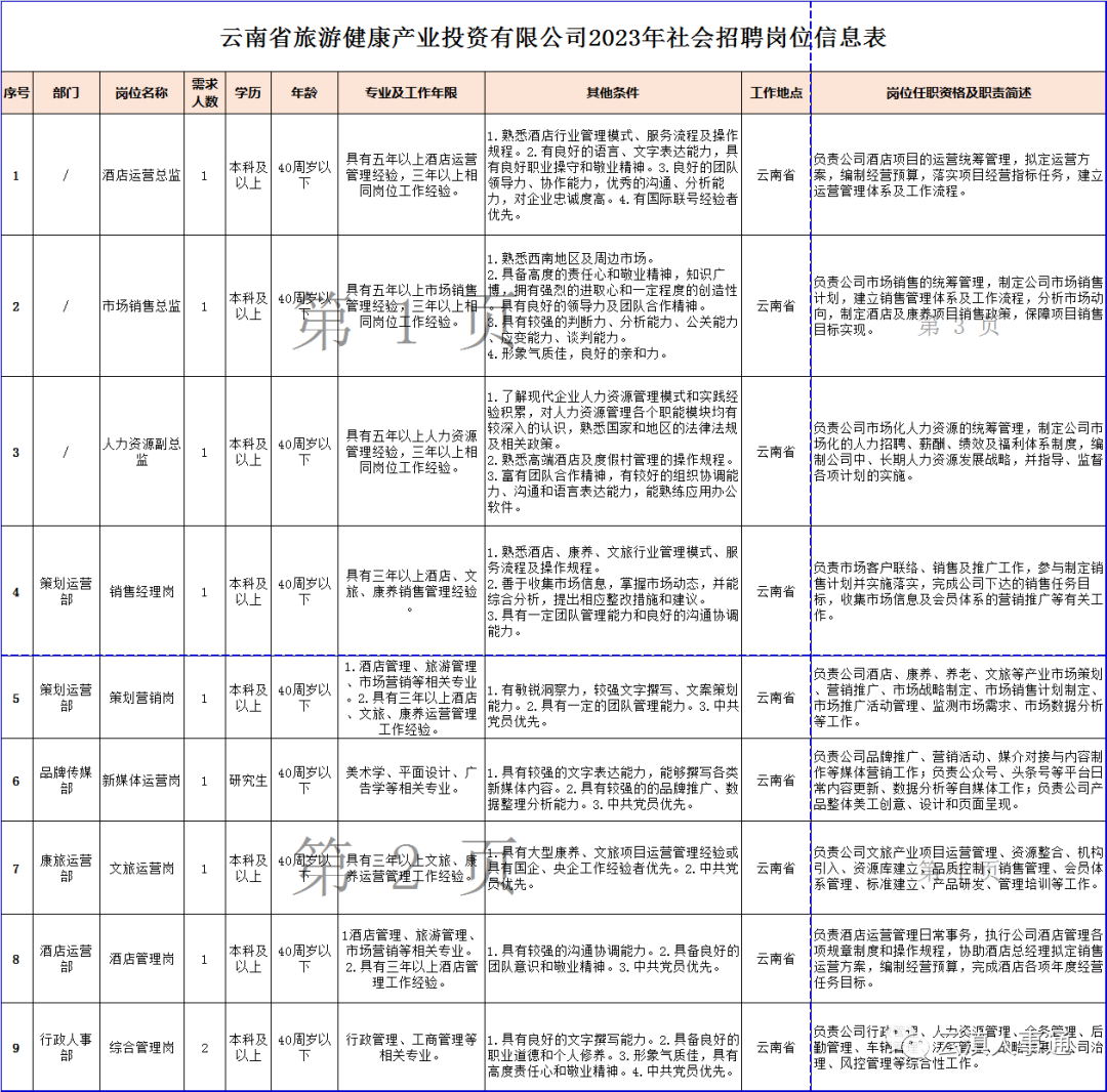 附件1:云南省旅游健康产业投资有限公司2023年社会招聘岗位信息表.xlsx