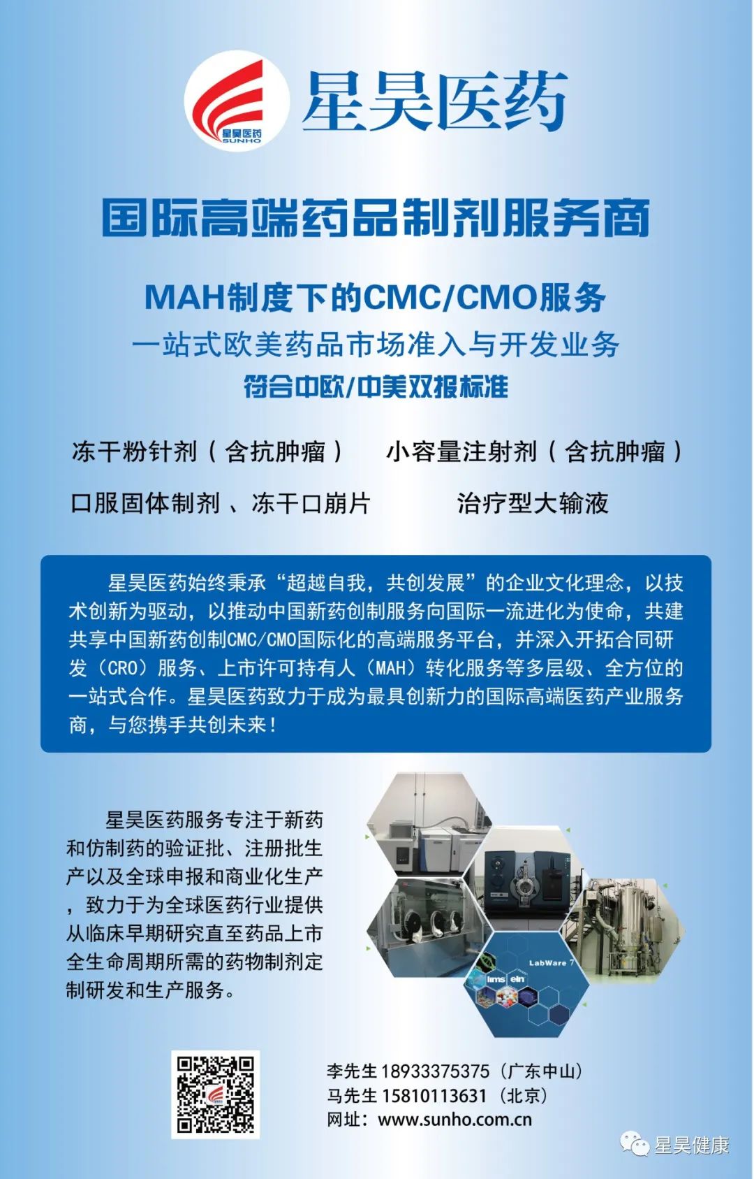 星昊医药(股票代码:430017),成立于2000年,是一家从事高端药物制剂研发产业化服务的创新型企业,为医药企业提供从临床早期研究直至药品上市全生命周期所需的药物制剂定制研发和生产服务。公司目前在北京亦庄、北京大兴、广东中山、吉林长春建有四大生产基地,制剂平台符合双报标准(中欧/中美),在中国/中国香港/美国/欧洲均设有分支机构。