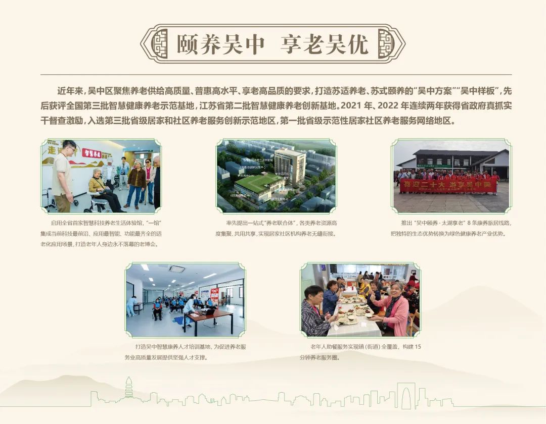 本次老交会,首次设立“苏式颐养”展馆,全面展示苏州市及全市十个版块养老服务工作成果。苏州养老努力为老年人提供覆盖城乡、惠及全民、均衡合理、优质高效的养老服务,用情用力做好养老服务提升工作,更好满足老年人的美好生活新期待。