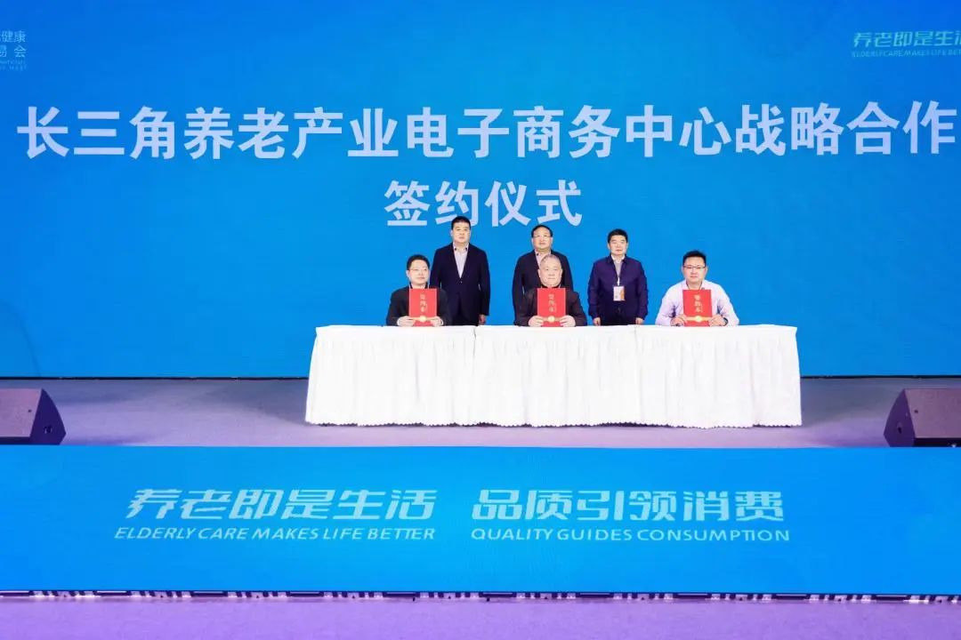 长三角养老产业电商合作大会上,长三角养老协会联合体牵头支持,在中国宿迁电子商务园区设立长三角养老产业电商中心。会上进行了相关领导致辞,介绍宿迁电子商务产业园区相关情况,苏州市民政局、宿迁市民政局领导上台见证签订合作共建协议等内容。