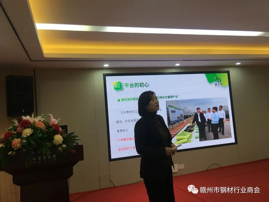 随后,我会会长单位赣州人和实业集团有限公司副总彭双红为大家介绍由赣州人和实业集团旗下成立的“硒游际”平台。赣州农品,硒有天成;健康生活,有硒才好!“硒游际”是一个集赣南硒产品、土特产,文化旅游和轻奢购物为一体的综合性电商平台。通过多种方式助力硒农硒产品,提高其收益和生活水平。