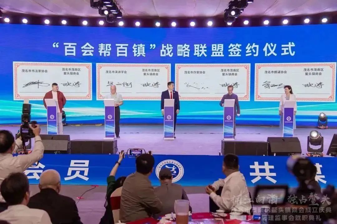 为更好地发挥商会作用,助推“百千万工程”落地见效,实现链接资源、优势互补、合作共赢,现场举行了“百会帮百镇”战略联盟签约仪式和金融助力高质量发展授信签约仪式,中国建行茂名市分行为鳌头商会授信39亿元。