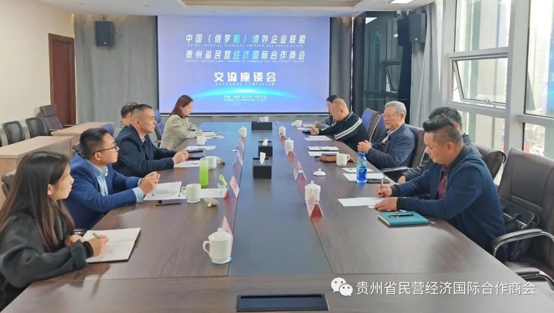 11月27日,贵州省民营经济国际合作商会与中国(俄罗斯)境外企业联盟进行了交流座谈。共同探讨如何促进双方经济合作,加深会员企业与中俄境外企业联盟相互了解,推进更深层次、更高水平的洽谈对接,进一步开拓俄罗斯市场,帮助会员企业“抱团出海”,把更多优势产业、优质产品推介到俄罗斯,推动贵州省民营企业的对外经济合作发展。中国(俄罗斯)境外企业联盟秘书长、俄中新时代合作中心理事长赵卫星,俄罗斯梅尔林公司股东总经理赵梦然,凯顿贸易、远东传媒董事长郑立贤,俄中新时代合作中心理事长助理龙双富;商会执行会长兼秘书长、华企国际主任周召民,监事长、贵州鹏越进出口贸易有限公司董事长蔡大雄,监事、贵州乾熵商务服务有限公司总经理王林涛,贵州荣和商务文化传媒有限公司总经理聂琳,商会秘书处姚继兰参加座谈。