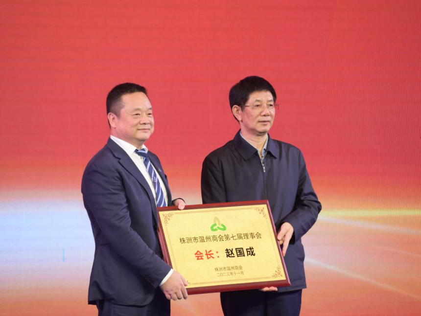 【通讯员 周彬彬】风华二十载,奋楫立潮头。11月25日下午,株洲市温州商会第七次会员代表大会暨成立二十周年庆典在株洲隆重召开。省委统战部副部长、省工商联党组书记刘事青出席大会讲话并为新当选会长赵国成授牌。株洲市委副书记、市长陈恢清,株洲市人大常委会副主任余群明,株洲市人民政府副市长杨胜跃、市政协副主席朱胜辉,温州市政协副主席诸葛启钏等出席会议。省内外友好商会嘉宾及株洲市温州商会全体会员等400余人参加会议,共贺商会盛事。