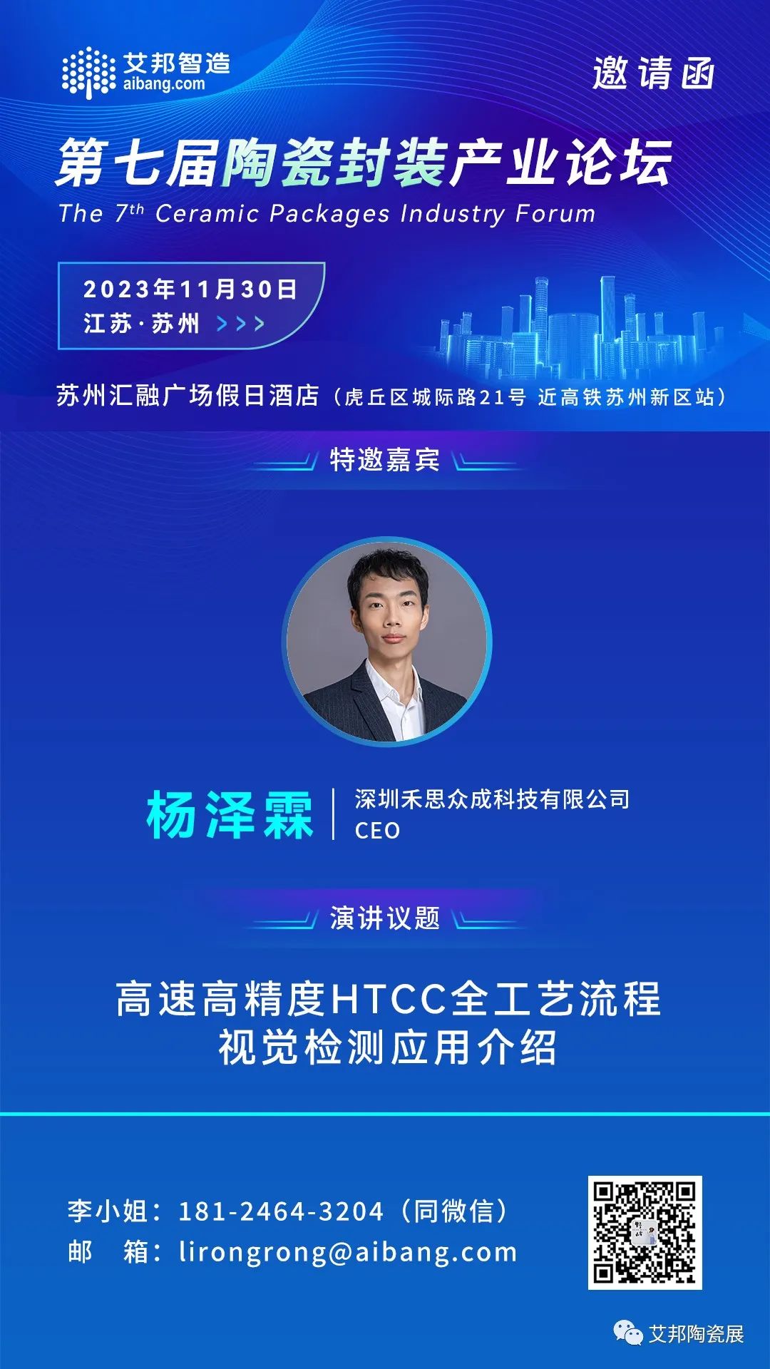 11月30日,深圳禾思众成科技有限公司将出席并赞助支持第七届陶瓷封装产业论坛,CEO 杨泽霖将做《高速高精度HTCC全工艺流程视觉检测应用介绍》主题演讲,欢迎大家与会交流。