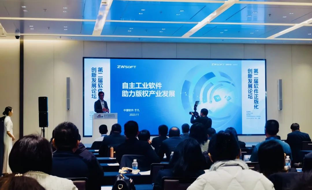 作为本届版博会的主题活动,11月25日进行了“第二届软件正版化创新发展论坛”,中望软件副总经理于凡在论坛上做了题为《自主工业软件,助力版权产业发展》的主题演讲,讲述了中望作为国产工业软件“先发者”的使命与责任。