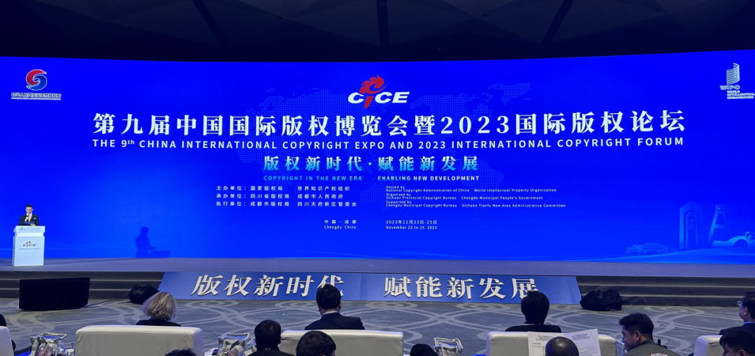 2023年11月23日至25日,由中国国家版权局、世界知识产权组织主办,四川省版权局和成都市人民政府承办,以“版权新时代,赋能新发展”为主题的第九届中国国际版权博览会(以下简称“版博会”)暨2023国际版权论坛在四川成都举办。中宣部副部长张建春,世界知识产权组织副总干事西尔维·福尔班,四川省委常委、宣传部部长郑莉,成都市委副书记、市长王凤朝出席开幕式并致辞。