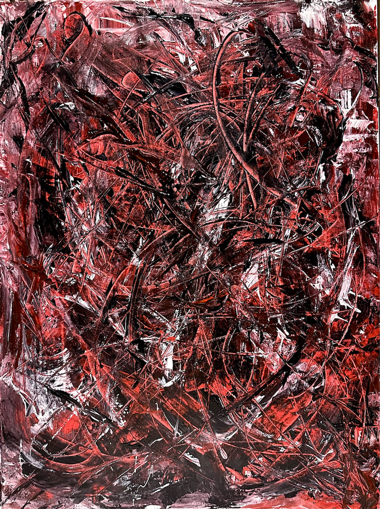 在自我掩埋之际,我深刻凝视着画布,领悟到艺术是既不能解救他人,也无法解脱自己。或许正是这个困惑、这个自我扪心之痛,给予它深刻内涵。正如哲学探寻真理的过程一样,矛盾与挣扎构筑了我们的精神世界。当我已被埋葬,我凝视你,救不了你,也救不了自己。