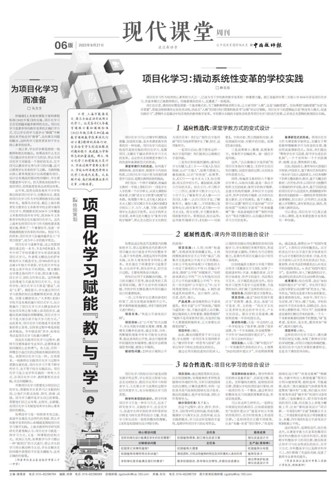 9月 27日,国家级期刊《中国教师报》整版刊登了我校林乐珍校长《项目化学习:撬动系统性变革的学校实践》。