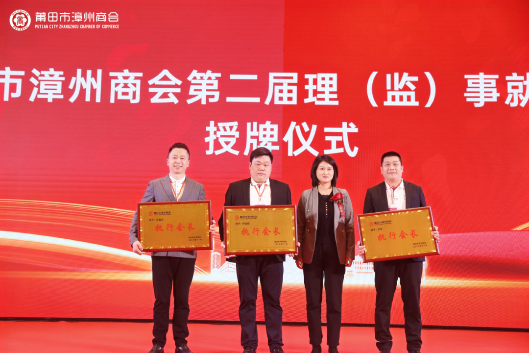 漳州市委统战部副部长、市工商联党组书记潘海鹰为执行会长授牌。