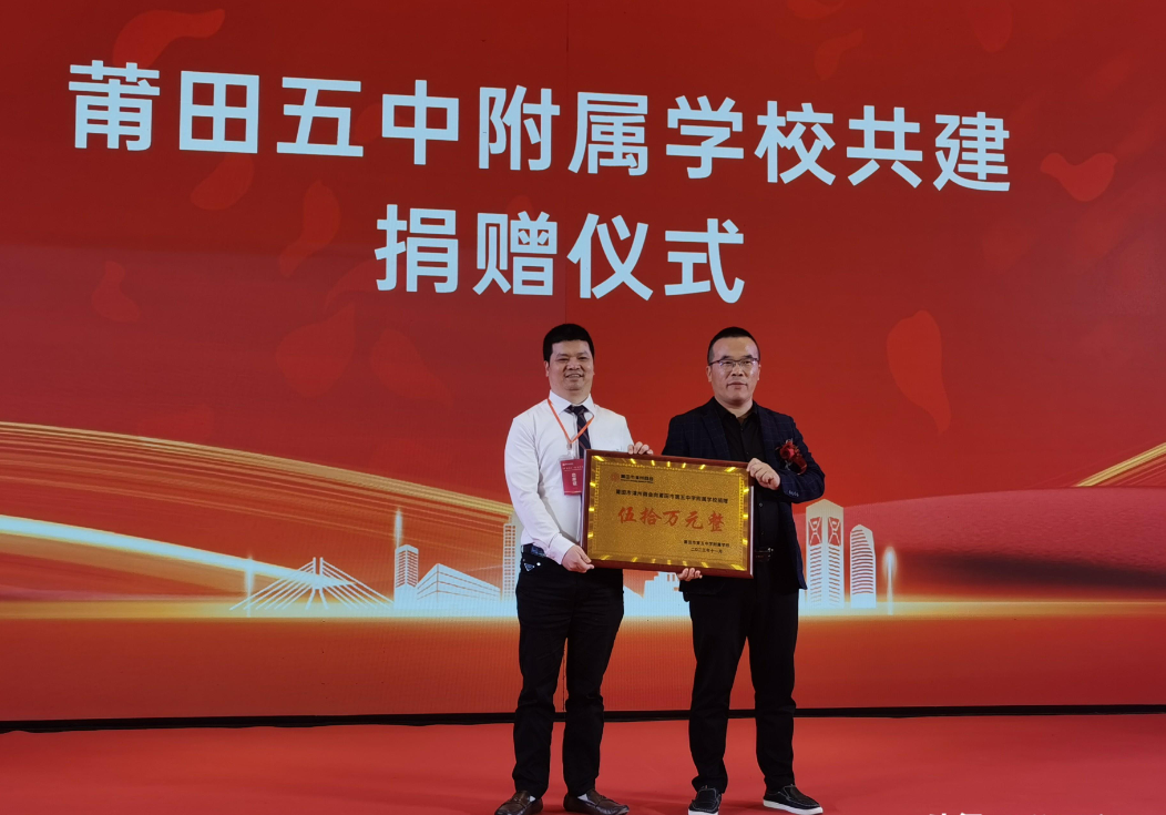 莆田五中附属中学共建捐赠仪式,漳州商会捐款50万元助力教育事业发展。