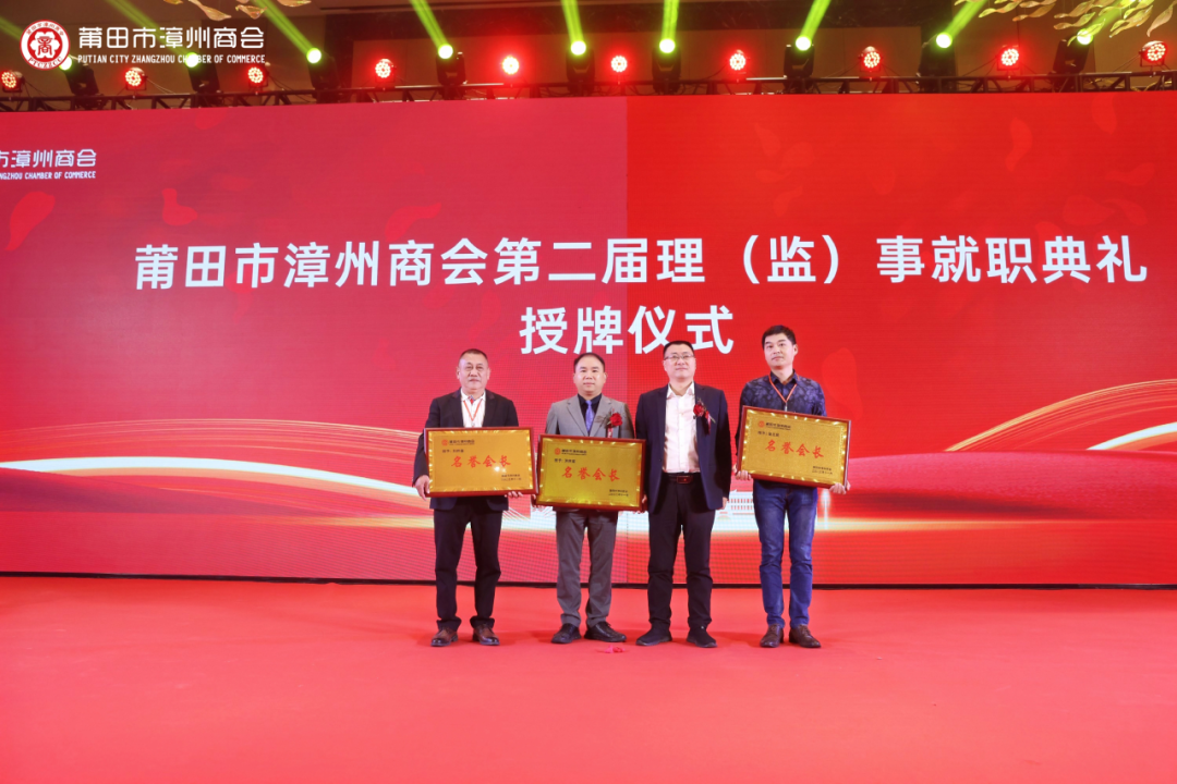 莆田市委统战部副部长、市工商联党组书记李向伟为名誉会长授牌。