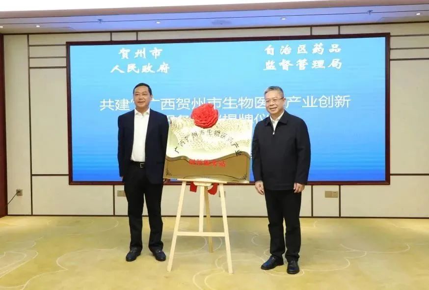 共同为“广西贺州市生物医药产业创新服务站”揭牌