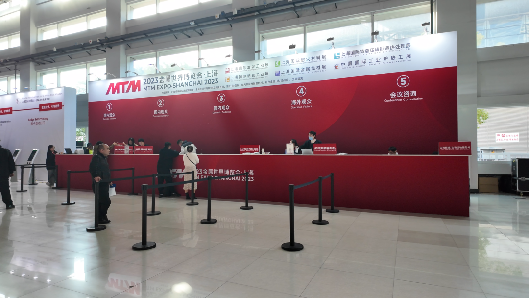 展会现场,国内观众可使用手机扫描现场入口及“观众登记处”二维码关注MTM金属世界博览会微信,填写登记资料进行微信注册,刷身份证过闸机入场参观。