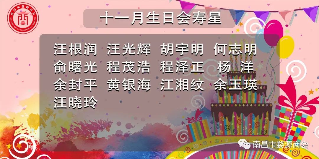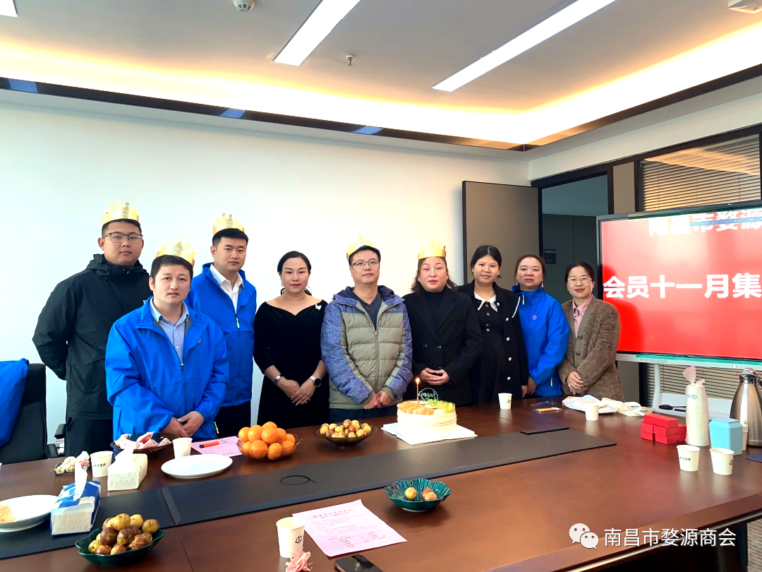 2023年11月26日上午, 南昌市婺源商会在轮值会长单位江西正本清源环境科技有限公司(江西省南昌市红谷滩区绿地国际博览城101栋16楼)召开“南昌市婺源商会十一月会员集体生日会”,会议由余玉瑛副秘书长主持,参加生日会的有:商会党支部书记詹丽英、轮值会长程茂浩、副秘书长余玉瑛、汪根润,理事汪美珍,会员俞封平、江湘纹、李红莲、王巍及秘书处专职人员等10余人。
