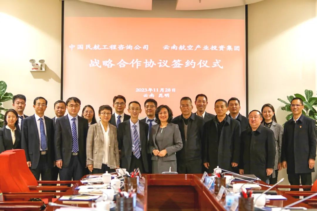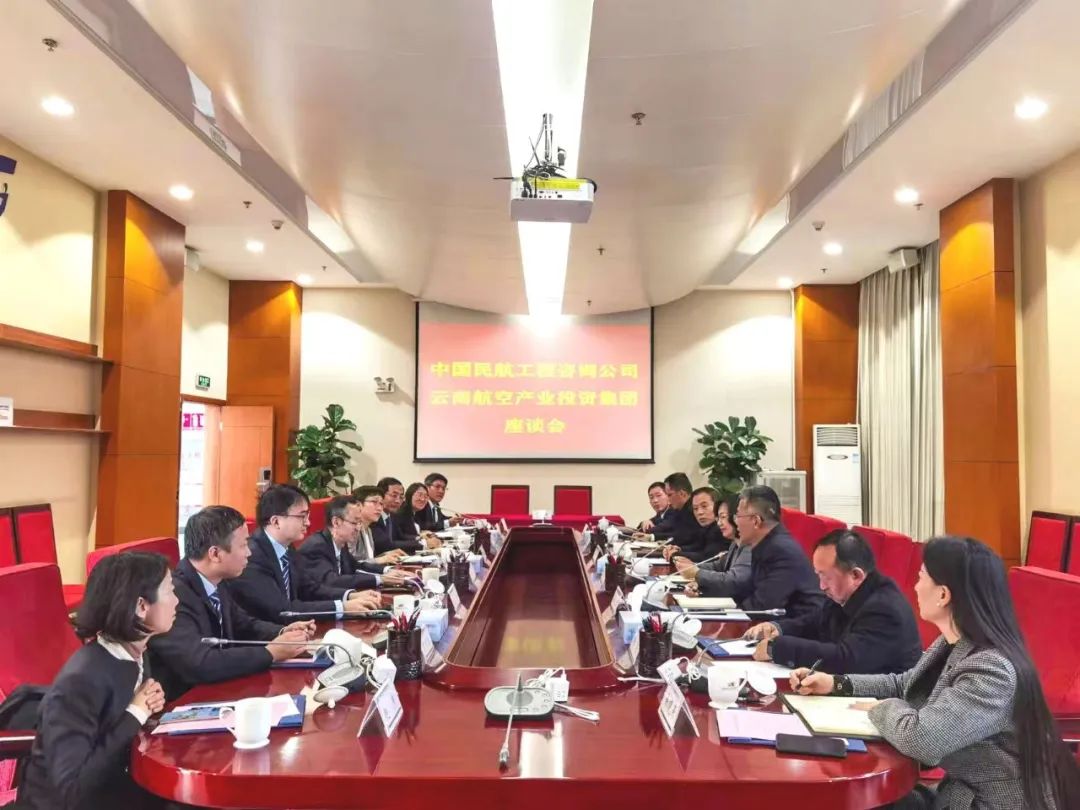11月28日,云南航空产业投资集团与中国民航工程咨询公司举行座谈会。集团党委书记、董事长赵家云与中国民航工程咨询公司党委书记、执行董事佟岱山就云南民航建设进行充分的交流和沟通。会议由集团党委副书记、总裁、副董事长姜文忠主持,并与中国民航工程咨询公司党委副书记、总经理闵冬丽作为双方代表签署了战略合作协议。集团公司副董事长、集团建设指挥部指挥长王剑辉,集团公司副总裁、总工程师陈骏,集团各职能部门负责人和中国民航工程咨询公司团队代表参加座谈。