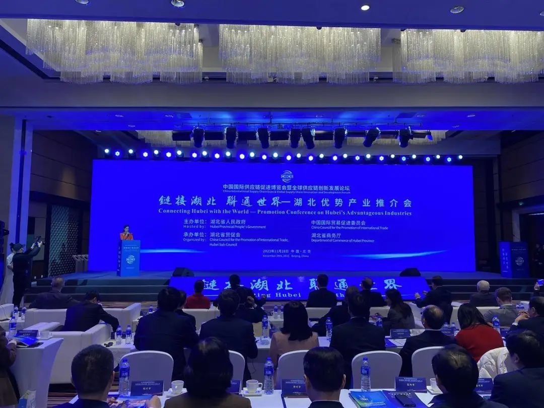 链接湖北,联通世界。11月28日,借首届中国国际供应链促进博览会开幕东风,湖北省政府、中国国际贸易促进委员会在北京联合举办“湖北优势产业推介会”,全球400多位嘉宾齐聚一堂,畅叙友谊、共谋发展,推动湖北企业积极融入全球产业链、供应链。