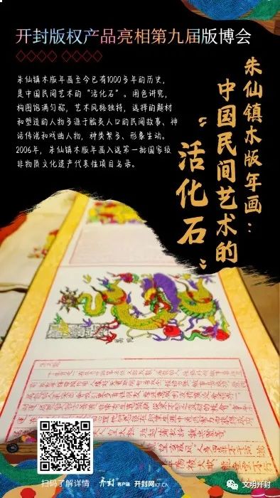 年画丝巾、年画摆件……在第九届中国国际版权博览会河南主展馆,一件件朱仙镇木版年画文创产品和一幅幅木版年画,极具鲜明的地方特色,吸引了众多观众的目光。
