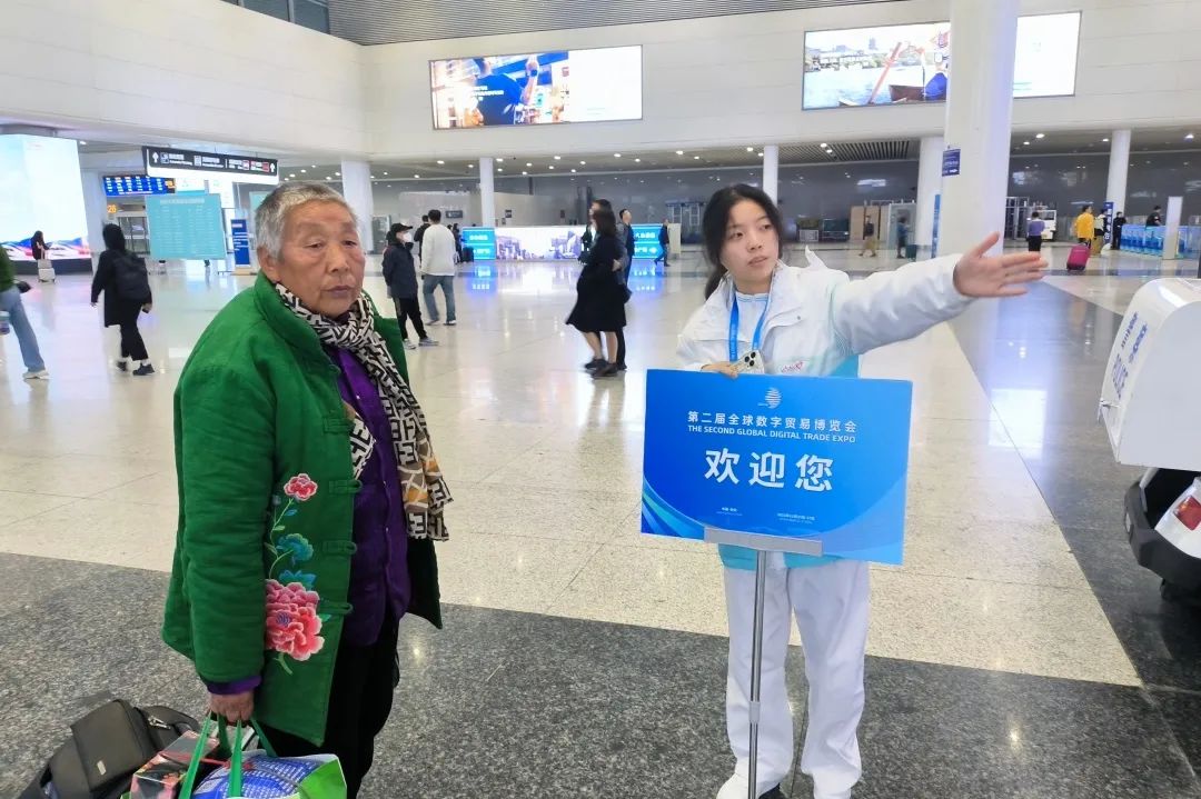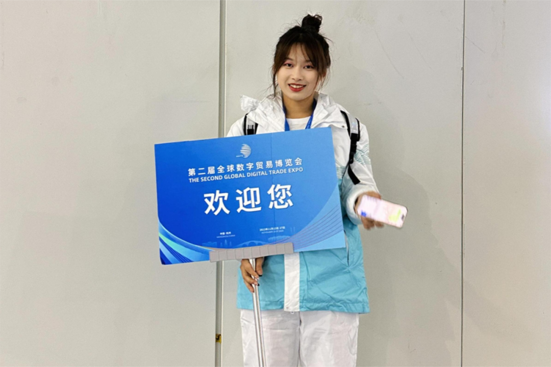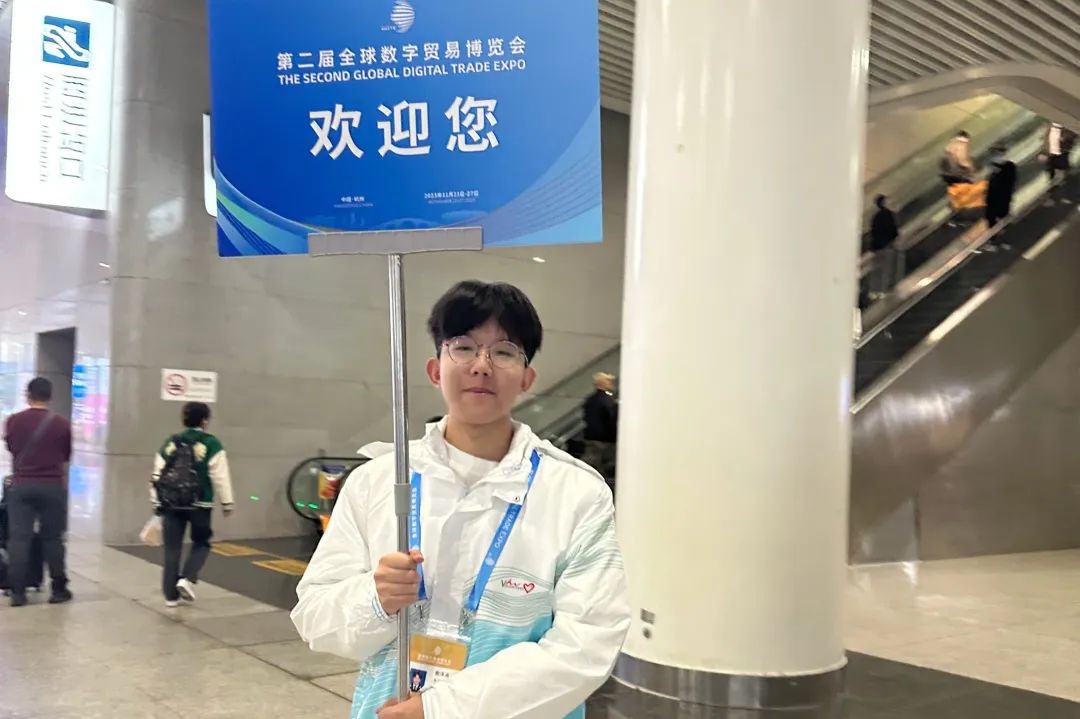 值得一提的是,服务过程中也有旅客在看到我们手中的牌子后,主动上前询问关于数贸会的相关信息,在帮助他们成功报名后,我更深刻地理解到这次志愿服务不只在于为嘉宾提供舒适化服务,更在于宣传数字化,让更多的公民了解到“专业化、数字化、场景化、国际化”为特色的数贸会。