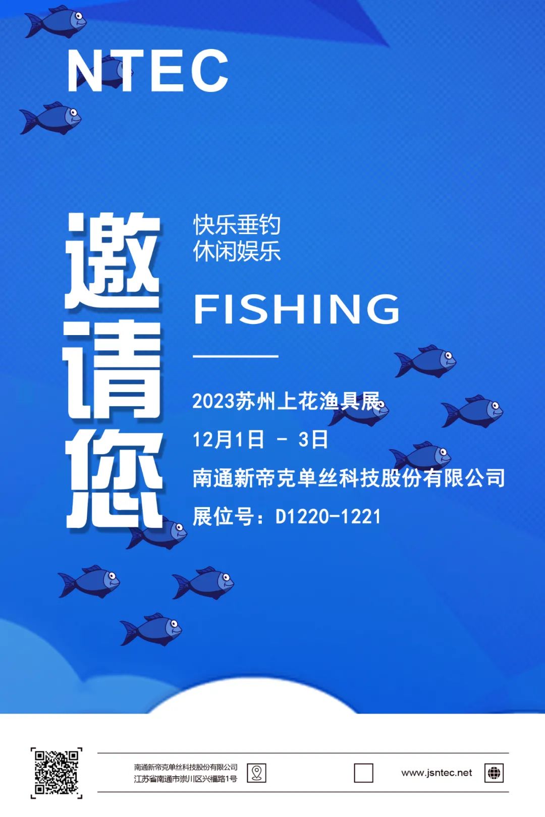 2023年苏州上花渔具展览会将于2023年12月1日-3日在苏州国际博览中心举办,我公司展位号为D1220-1221,诚邀您前来参观指导,万分感谢您对新帝克品牌钓线的信赖与支持!