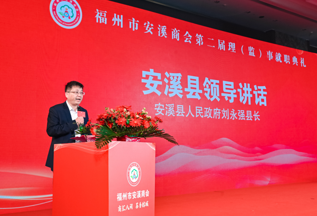 安溪县人民政府县长刘永强在发言中表示,福州市安溪商会自2017年成立以来,以乡情亲情商情为纽带,聚力搭好平台、链接资源、做优服务,为广大在榕乡亲打造了联谊互助、合作共赢的温馨家园。他对福州市安溪商会深度参与家乡安溪的经济社会建设表示充分的肯定。他希望商会以此次换届为契机,进一步提升吸引力、影响力和凝聚力,更好地服务广大在榕乡亲、助力安榕两地经济社会高质量发展。