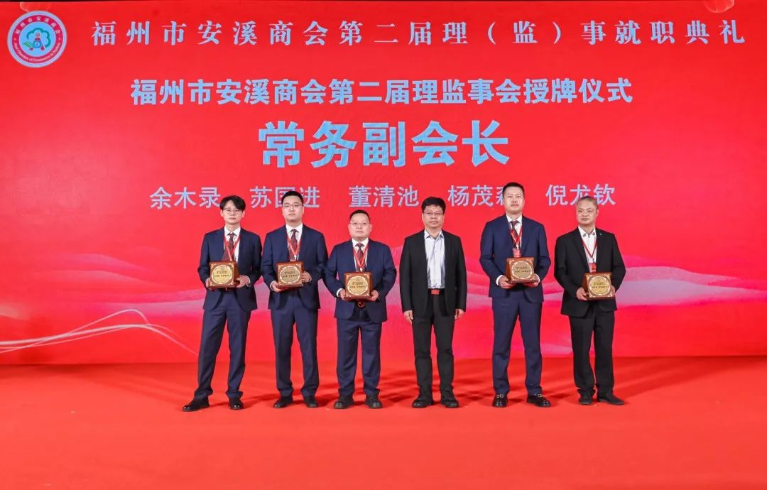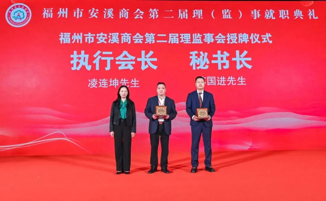 就职典礼上,出席领导为新一届理事会颁发牌匾。随后,进行了商会委员会、球队授旗仪式,安溪铁观音女排授球仪式,乡贤联络站、招商工作联络处、校企合作、慈善捐赠等授牌仪式,福州市安溪商会会员携手共赢,助力榕城和茶乡的高质量发展,勇于承担社会责任,反哺家乡和社会。