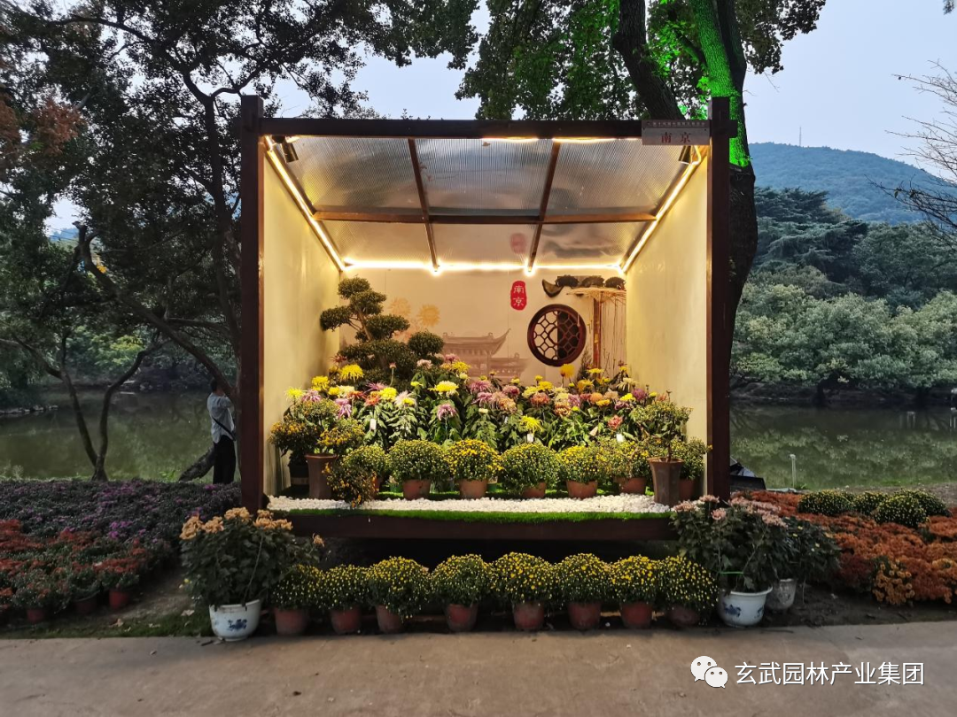 标准展台单元以古朴典雅的江南古典园林庭院为场景,将各种瓣型、颜色和造型的菊花和中式园林的白墙、青瓦、漏窗等融合,营造出古典园林风采,展现了南京精湛的养菊技艺和悠久的菊花文化。该标准展台最终斩获金奖。