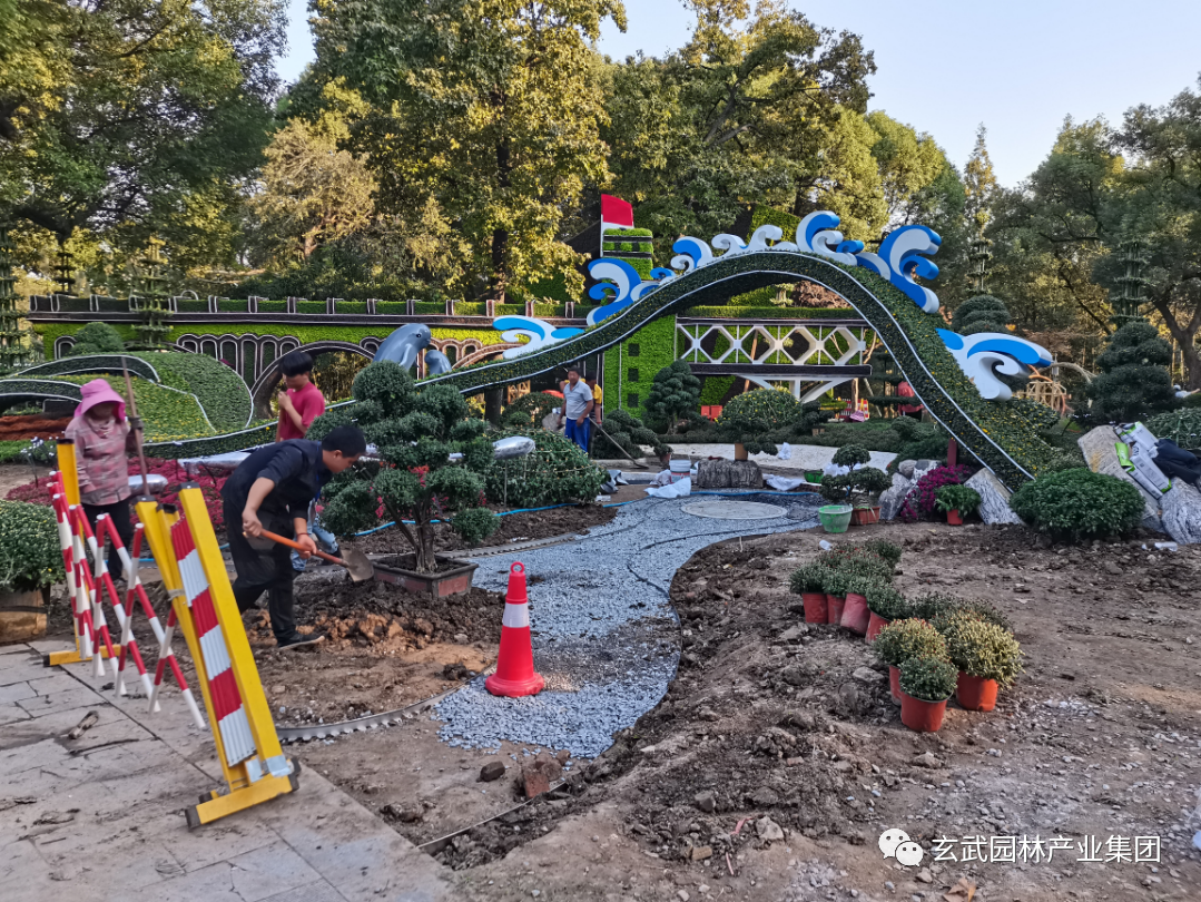 本届菊展南京展园项目,公司领导高度重视,安排绿雕花境事业部优秀项目管理团队驻场组织施工,项目负责人既有施工管理经验,又具备设计优化能力,能够领会设计意图,严格把控各施工工序,把园林艺术与菊花的优美和南京文化有机融合成好的作品。