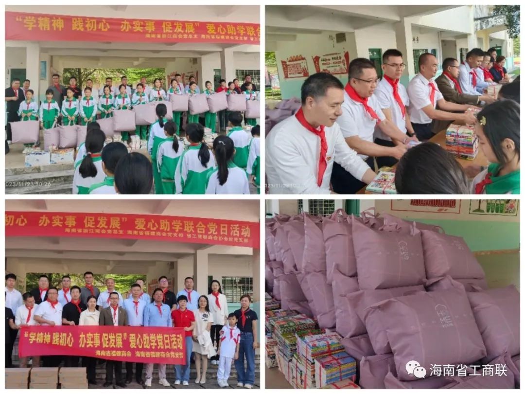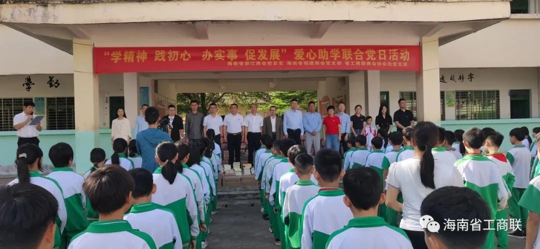 在屯昌县南坤镇南山小学举行了爱心助学捐赠仪式。商会爱心企业家党员向学生们捐赠了1200余本图书、文具和100套被褥及学生牛奶等物品。一行人还参观了学生宿舍,当了解到学生不能洗热水澡时,浙江商会第二党支部书记张伟良当即表示,将安排公司向学校捐赠2台大容量热水器,帮助学生解决洗澡难的问题。吴经毛校长代表学校对各位企业家的爱心表示崇高的敬意,感谢他们的爱心帮助。他期望孩子们要铭记爱,长大之后懂得传递爱、分享爱,培养爱他人、爱社会、爱党爱国的能力,为创造更有爱的世界而努力学习。