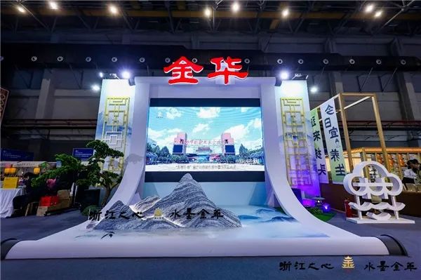 金华展区以“水墨金华”为主题惊艳亮相,结合多元化文旅资源、优质文旅产品展销,集中体现了近年来金华文旅深度融合新成果,进一步打响“水墨金华”文旅品牌。展区造型沿用传统江南水墨风格,将婺式建筑融入立绘布置当中,颇具巧思。中心展台设计以“卷轴”为载体,嵌入超大显示屏,轮番展示全市山水美景和文化风韵。