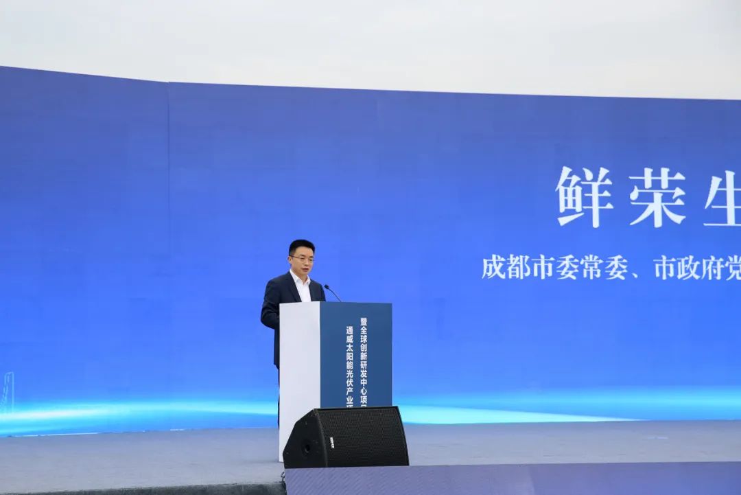 成都市委常委、市政府党组成员鲜荣生致辞表示,通威立足成都,深耕光伏,不断刷新“通威速度”“成都速度”,实现了从跟跑、并跑到领跑的跨越式发展,连续六年出货量在全球居第一位。通威太阳能从小到大的发展历程也是成都光伏产业从有到强的发展历程。通威在汉元主席的带领下,始终将科技创新放在企业发展的第一位,这次全球创新研发中心项目开工更具有标志性的意义。希望通威以此为契机,推动更多科技成果在成都发现,更多转化项目在成都落地。2023年,通威成功迈入世界500强,期待通威站在新的起点,发挥好链主作用,聚集更多上下游、左右岸的企业共同在成都高标准打造千亿级产业集群。作为光伏行业的全球龙头企业,通威从零碳运营、低碳价值链、零碳产品三个层面切入,以实际行动支撑双碳目标的实施,坚信通威将继续发挥领军作用,为成都优化调整能源结构、构建新型能源体系,坚定走好生态优先、绿色发展之路作出更大的贡献。成都市委、市政府将一如既往提供最优质的服务,最全面的保障,支持通威高质量发展,成为更有行业引领力和全球竞争力的链主企业。