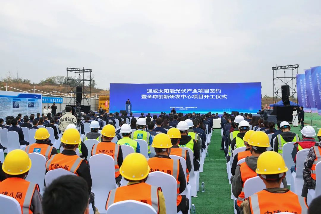 11月30日,通威太阳能光伏产业项目签约暨全球创新研发中心项目开工仪式在通威太阳能双流基地隆重举行。成都市委副书记、市长王凤朝,市委常委、市政府党组成员鲜荣生,市政府秘书长戴志勇,双流区委书记欧昭,双流区委副书记、区长杨钒,全国人大代表、全国工商联副主席、通威集团董事局刘汉元主席,通威股份董事长、CEO刘舒琪,通威股份光伏首席技术官邢国强,通威太阳能总经理周华等出席开工仪式。仪式由双流区委书记欧昭主持,项目建设方代表、通威太阳能职工代表等共同见证。