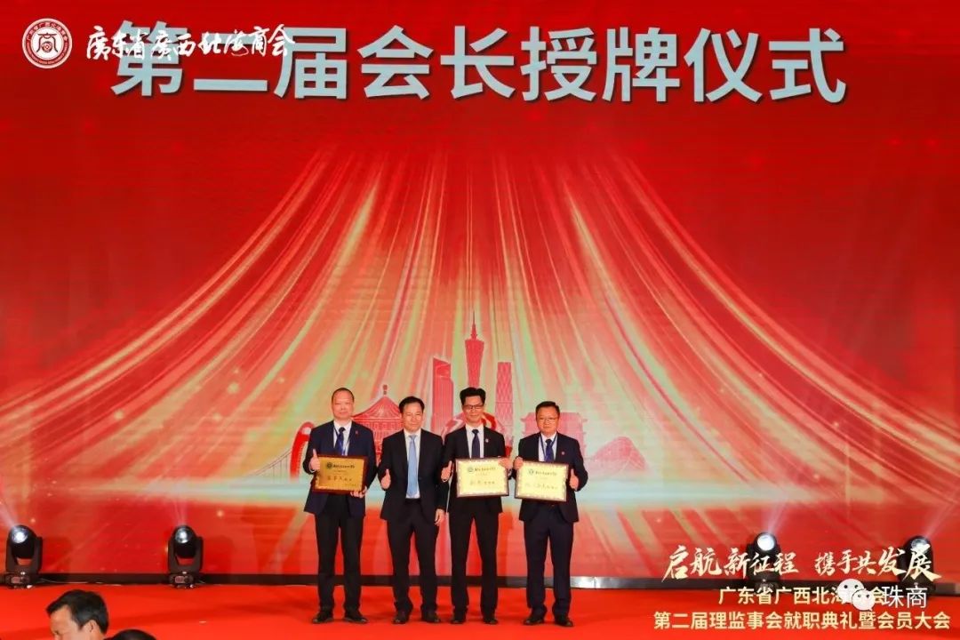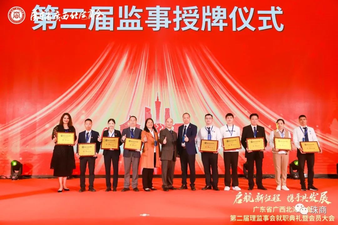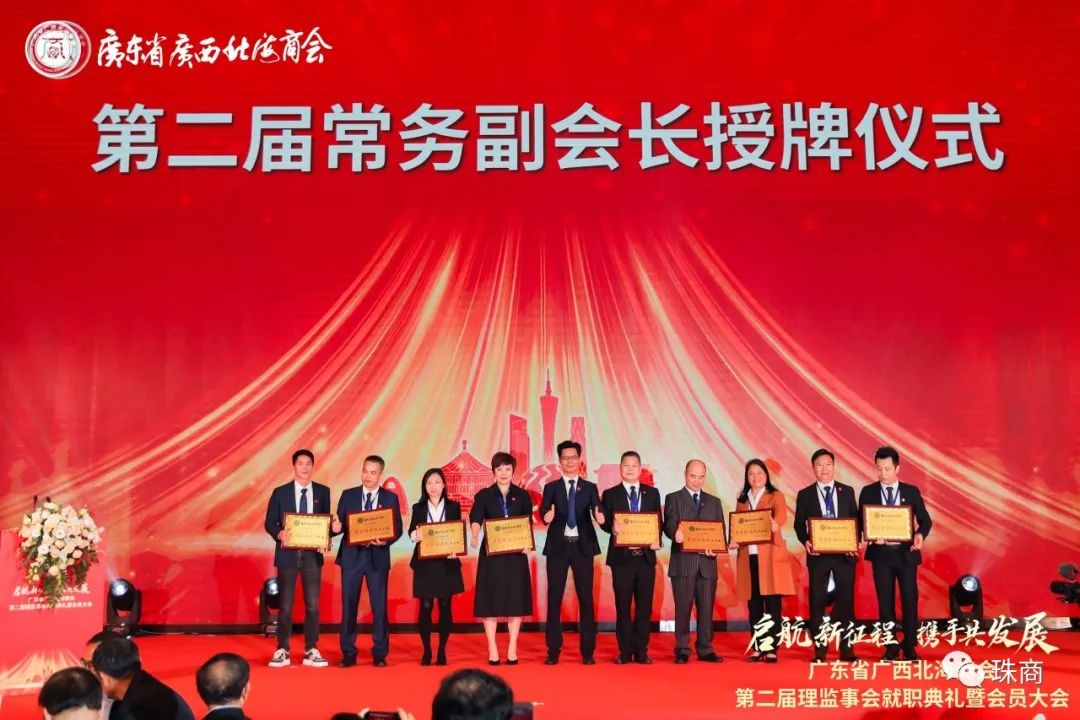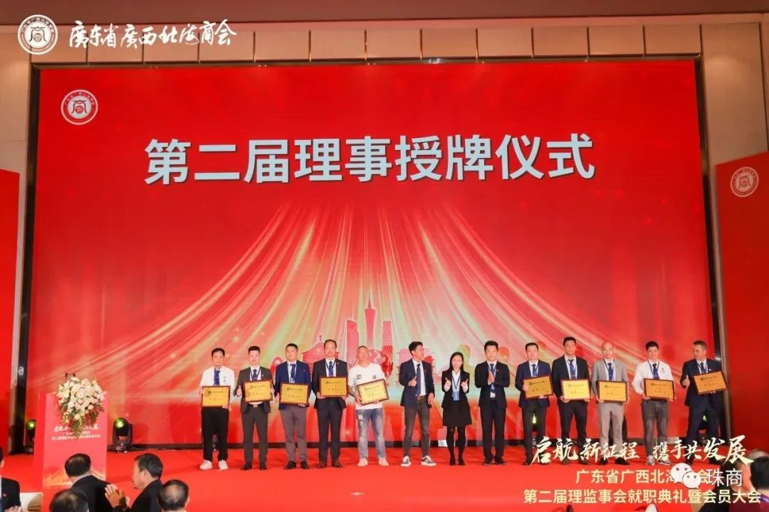 大会举行了会长、执行会长、常务副会长、副会长、理事及监事长、监事的授牌仪式,李国敏博士续任会长,陈海山续任执行会长,常务副会长有邓贵龙、陈华、钟继美、王宗德、卢来贝、李秀艳、李杏艳、劳崇煜、廖民超,副会长有陈文幸、陈银婷、温科福、周虎、郭煋辉、马祥春、蔡卓伟、蓝景明、彭建华、朱华宝、张均福、莫蔚蓝,理事有陈延礼、陈海、徐康彪、劳振儒、陈勇安、谭昌波、吴三江、廖泰右、吴国斌、林俊江、朱统、陈龙祥、张庆雄、潘美铃、李贤、邹昆宏、傅仁政、陈娟、李志云、张鹏、陈文玲,赵宏任监事长,监事有利慧晶、顾维广。他们分别上台接受牌匾。