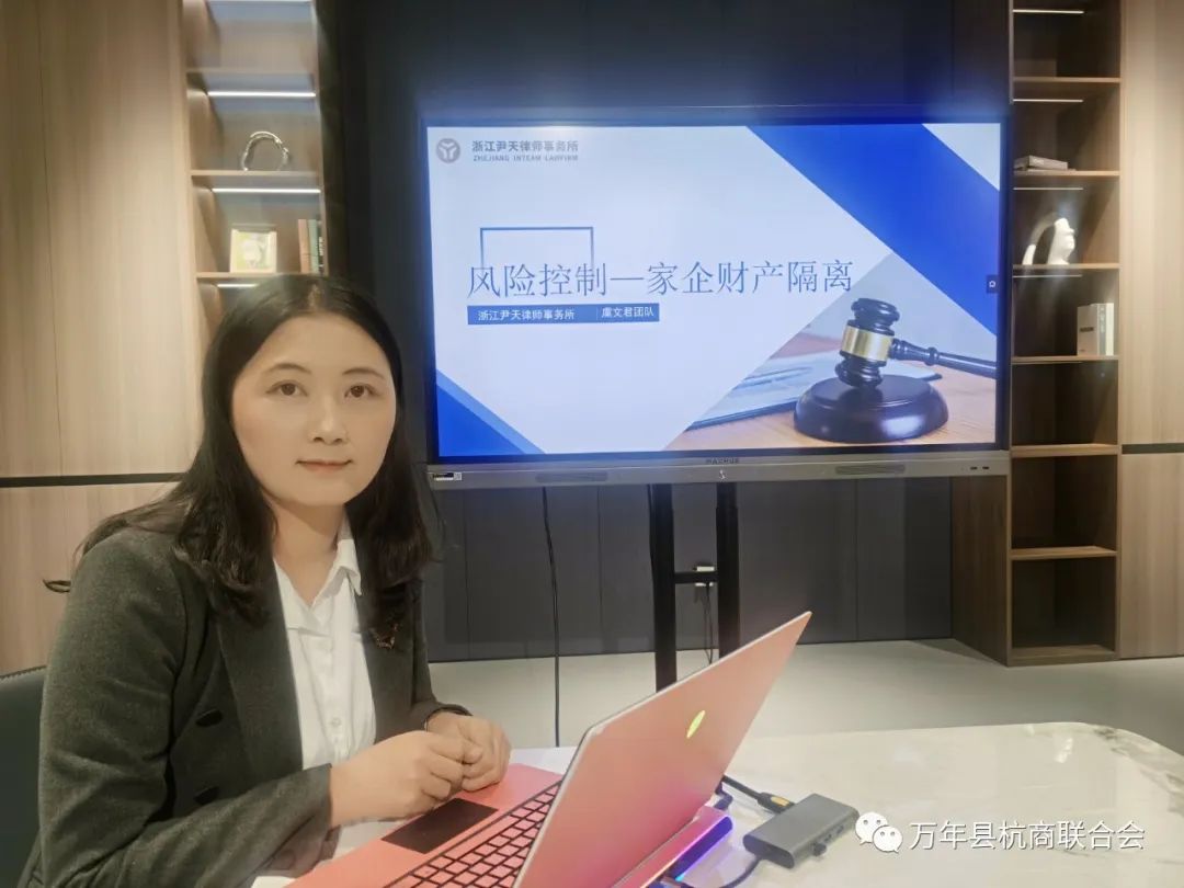 为了提高民营企业人士法律意识和法律素养,促进企业合法经营,2023年11月30日下午,万年县杭商联合会邀请商会法律顾问虞文君律师, 就公司资产和家庭资产的隔离做专题讲座。