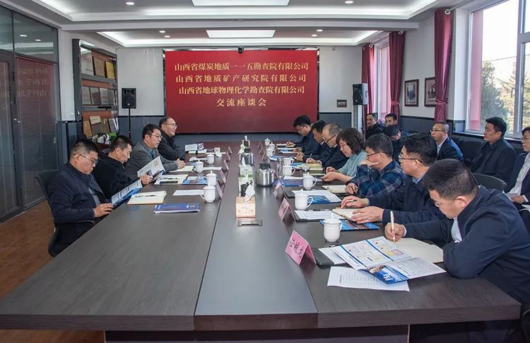 山西省煤炭地质一一五勘查院有限公司党委专职副书记王鸿鹏、纪委书记蔚伟、副总经理王建军、副总经理任蛟龙;山西省地质矿产研究院有限公司副总经理、总工程师张绍韡;物化院有限公司总经理解团结,党委专职副书记范宗胜,纪委书记王冲,副总经理、总工程师周新鹏等领导参加座谈并交流发言。三家单位相关实体、部门负责人参加座谈,并进行了业务对接。